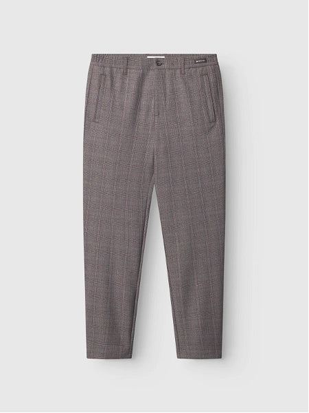 Een verfijnde pantalon met een moderne, taps toelopende pasvorm en een verfijnd ruitjespatroon.