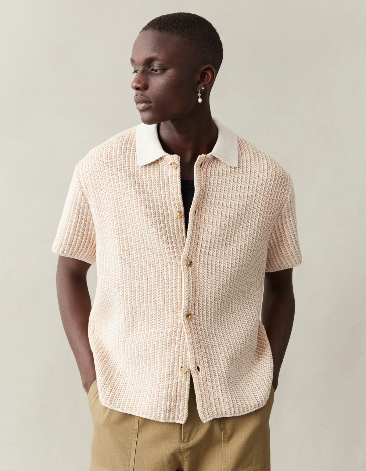 Easton Knitted Shirt Camel/Ivory